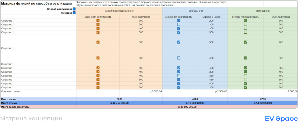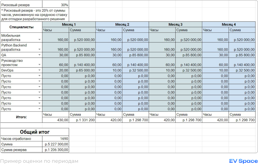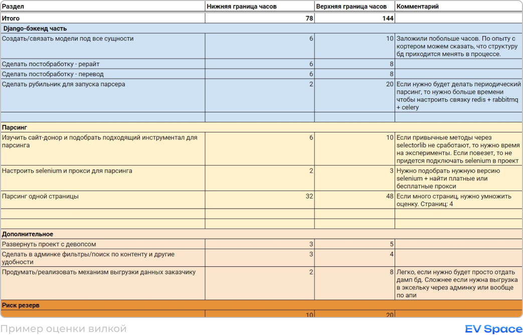 Эта табличка заполняется совместно с разработчиками. Мы часто используем их, когда оцениваем аутстафф-задачи от партнеров.